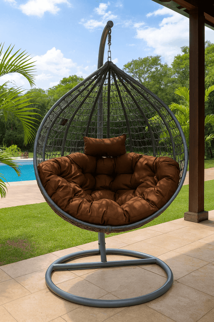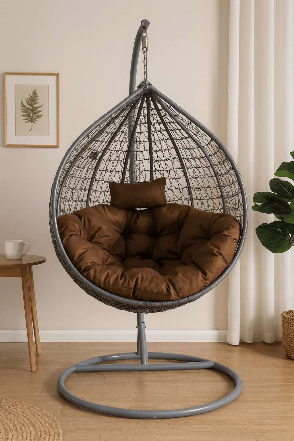 SoloNest Grey Single Seater Hanging Egg Chair With Brown Cushion