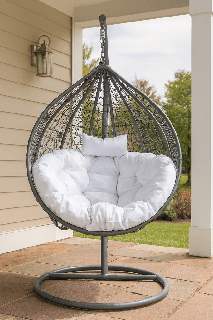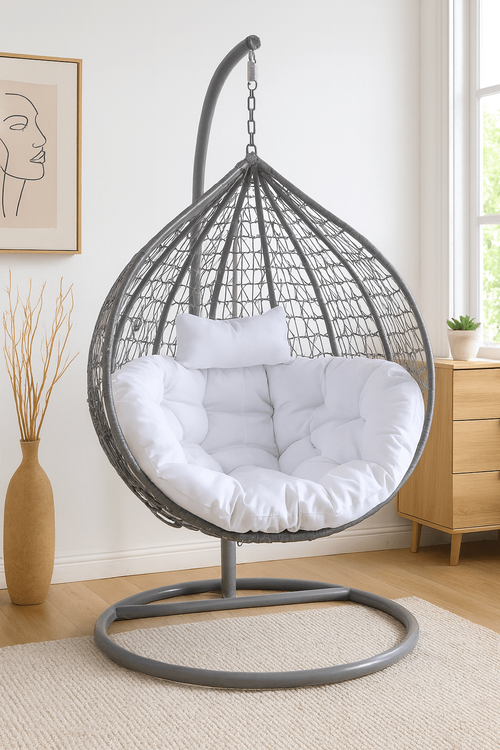 SoloNest Grey Single Seater Hanging Egg Chair With White Cushions