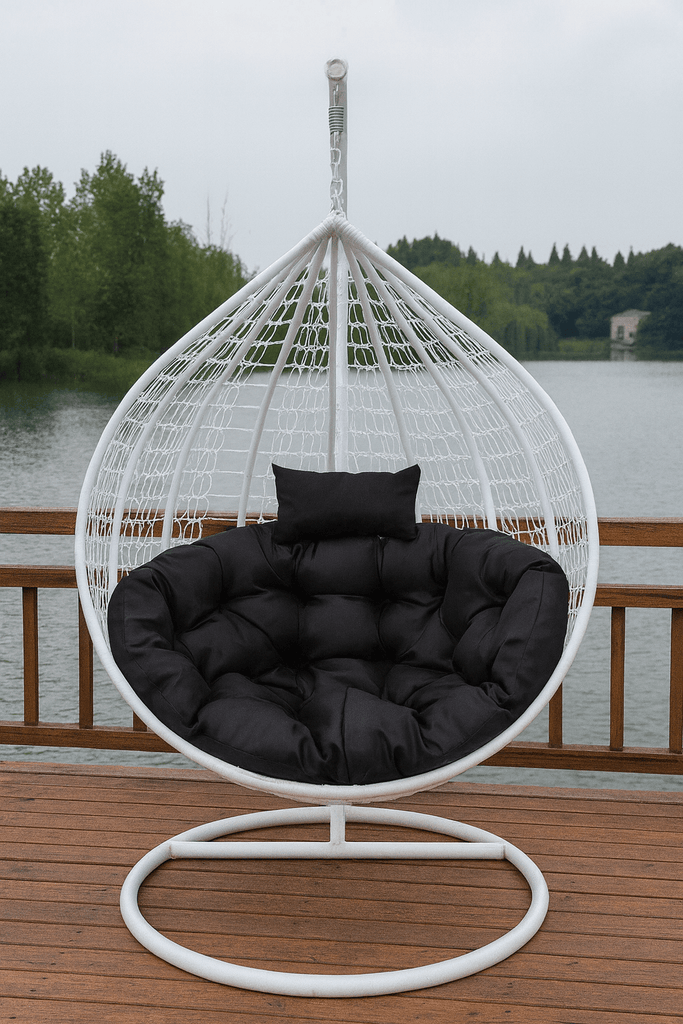 The SoloNest White Single Egg Chair with Black Cushion is a striking blend of modern elegance and comfort. Featuring a crisp white rattan frame and deep black cushions, this freestanding egg chair creates an eye-catching yet cozy statement for any space—indoors or outdoors.