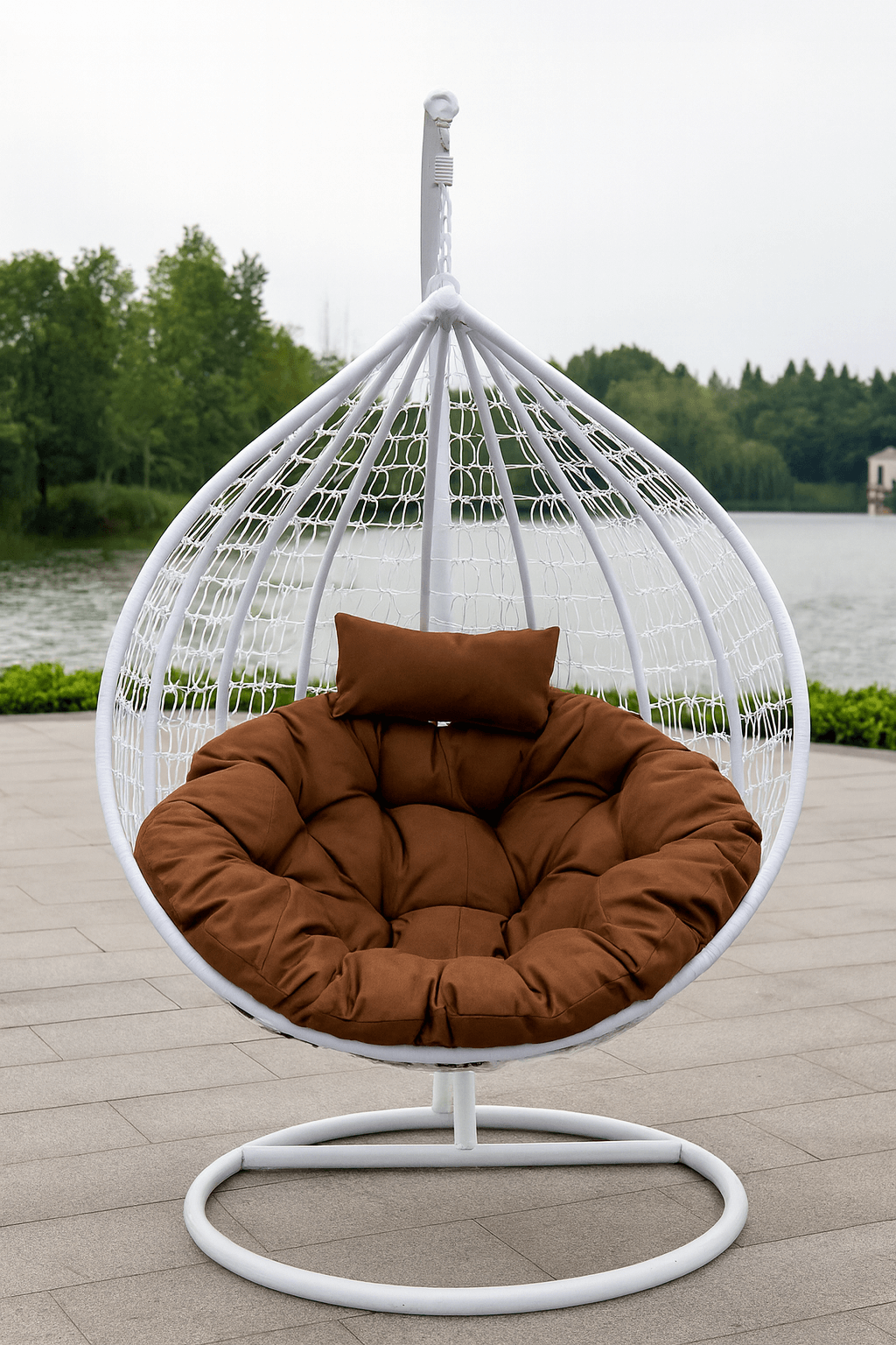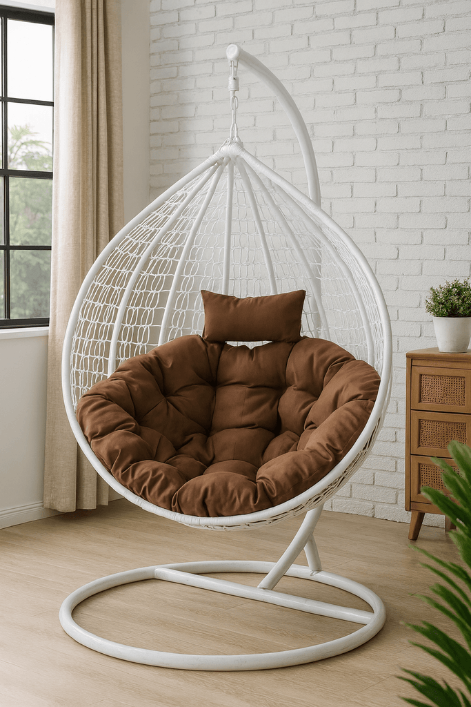 The SoloNest White Single Seater Freestanding Hanging Egg Chair With Beige Pillow offers a perfect blend of modern design and everyday comfort. Designed for Australian lifestyles, it’s equally at home indoors or in your outdoor oasis. The soft beige cushions add a warm, neutral touch, while the freestanding white frame provides a clean, contemporary aesthetic.