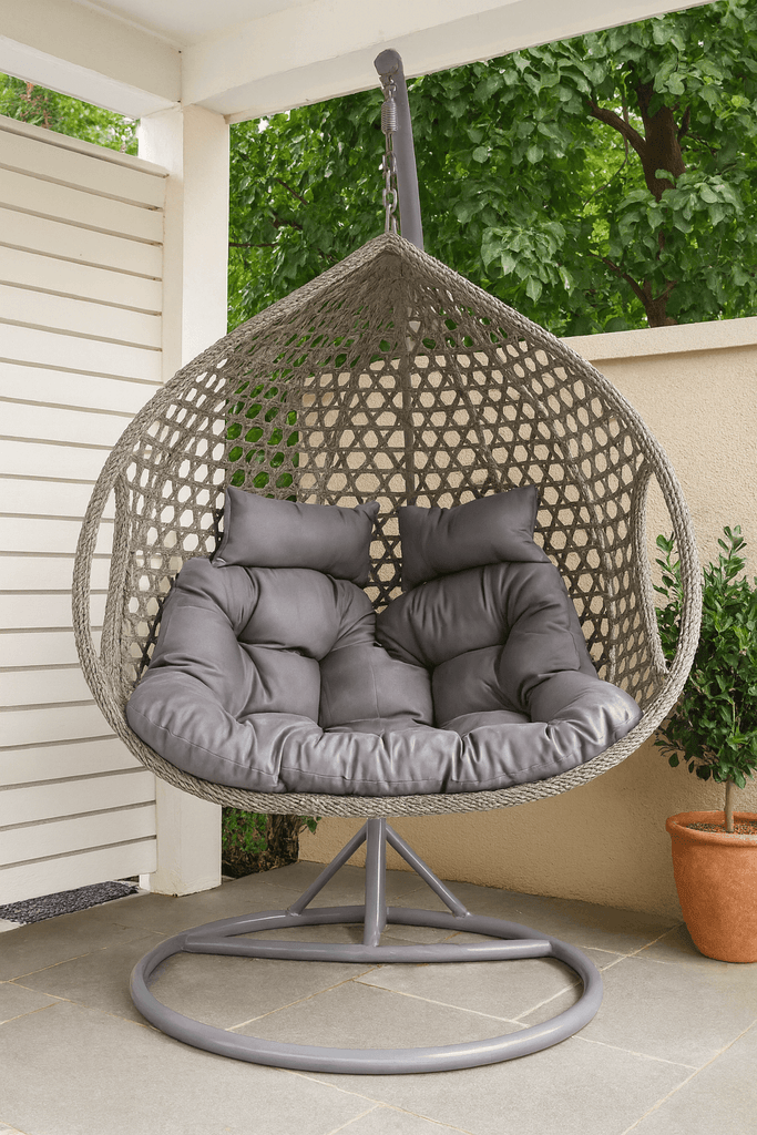 DuoHaven Double Seat Hanging Egg Chair - Grey Basket & Grey Cushion